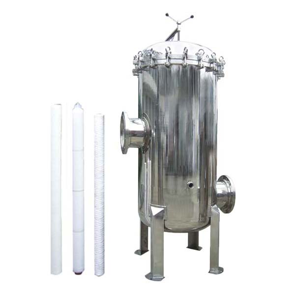 保安過(guò)濾器大都采用不銹鋼做外殼,內(nèi)部裝過(guò)濾濾芯,主要用在多介質(zhì)預(yù)處理過(guò)濾之后,反滲透、超濾等膜過(guò)濾設(shè)備之前。用來(lái)濾除經(jīng)多介質(zhì)過(guò)濾后的細(xì)小物質(zhì)(例如微小的石英沙,活性炭顆粒等),以確保水質(zhì)過(guò)濾精度及保護(hù)膜過(guò)濾元件不受大顆粒物質(zhì)的損壞。
