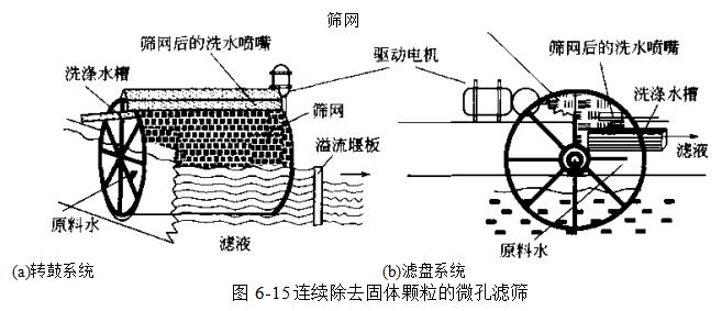 微孔篩分最普遍的應(yīng)用是在飲用水和廢水處理工業(yè)中,孔徑為15?200μm的編織金屬網(wǎng)或纖維織物安裝在旋轉(zhuǎn)轉(zhuǎn)筒的外側(cè),轉(zhuǎn)筒的一般直徑為1?3.3m,長度為0.6?5Im.