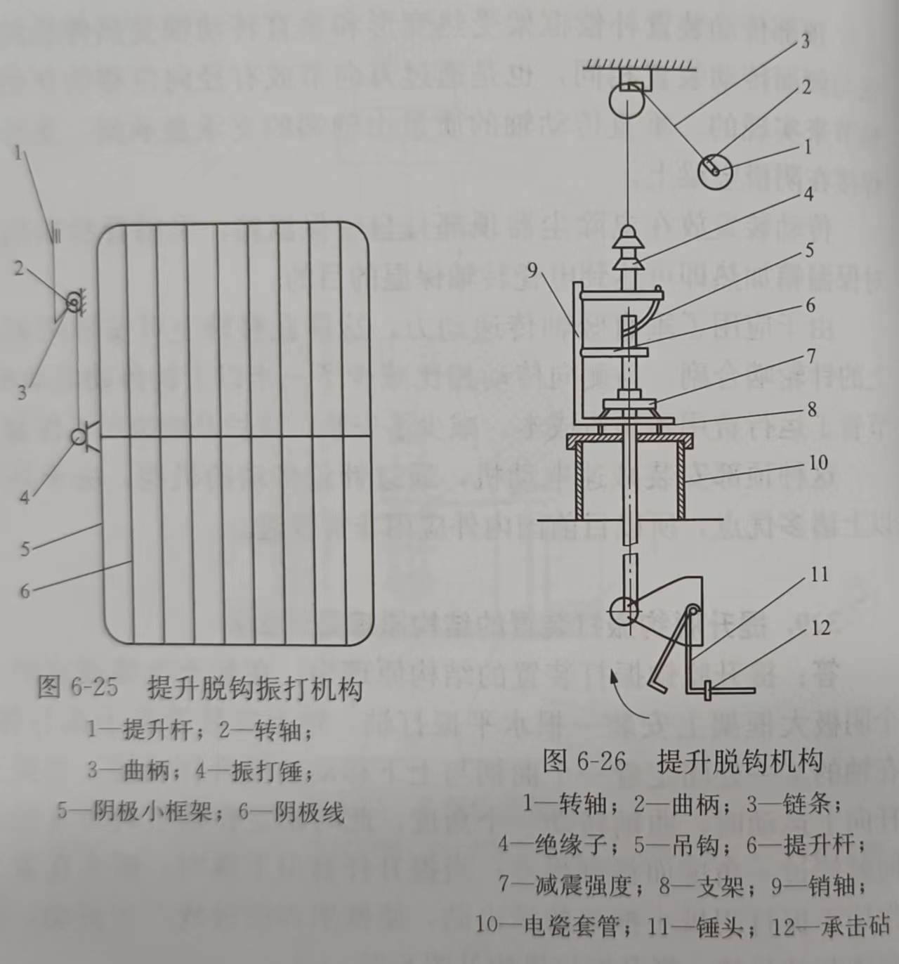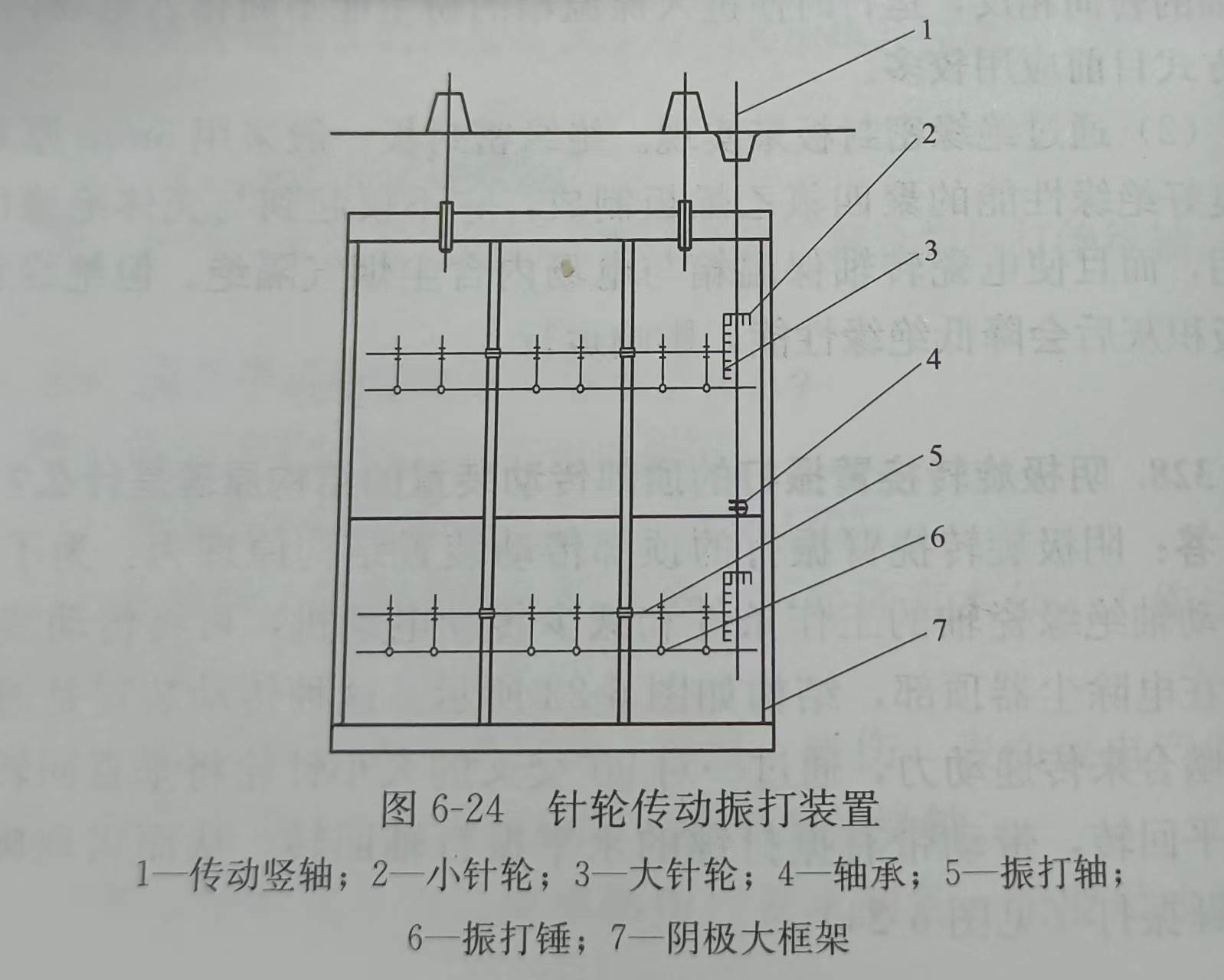 在每個(gè)電場(chǎng)或室的一個(gè)陰極大框架上安裝一根水平振打軸,軸上安裝著若干振打錘,在軸的某一處固定著一個(gè)曲柄與上下移動(dòng)的提升桿鉸接.