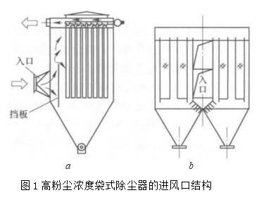 除塵器入口設(shè)緩沖區(qū)通常采用導(dǎo)流板結(jié)構(gòu)(圖1)防止粉塵沖刷濾袋并使粗粒粉塵在慣性力作用下沉降至灰斗緩沖區(qū)主要作用是使含塵氣流均布因此不要求具有高的粉塵捕集效率.