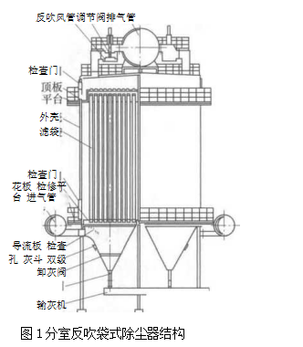 分室反吹袋式除塵器主要由箱體,濾袋,灰斗,反吹風(fēng)切換閥門和管道以及進氣和排氣管道組成.