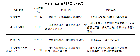 根據(jù)高壓工作管路需要保護元件的配合間隙,確定過濾精度.
