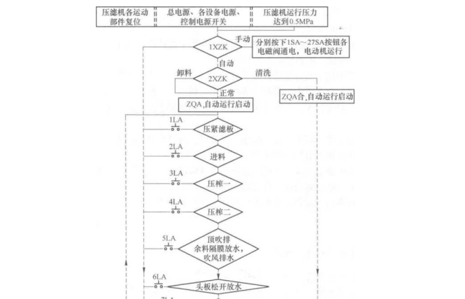 自動(dòng)和手動(dòng)操作過程中嚴(yán)禁亂動(dòng)控制箱盤上按鈕開關(guān)和壓濾機(jī)上行程開關(guān),否 則程序打亂,造成漏液,重者造成機(jī)器損壞.