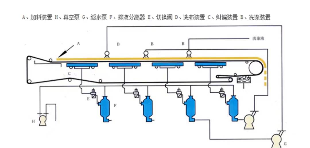 移動(dòng)室?guī)秸婵者^濾機(jī),真空盒隨水平濾帶一起移動(dòng),并且過濾,洗滌,干燥,卸料等操作同時(shí)進(jìn)行.