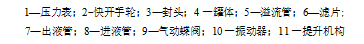 1)罐體。罐體由筒體、錐體、加強圈、連接法蘭焊接而成。罐體上焊有進料管、出 液管、溢流管(蒸汽、壓縮空氣進口管)、支座、連接耳、振動軸法蘭等。罐內裝有濾片, 罐體通過快開螺栓與罐蓋相連,通過螺栓與氣動蝶閥相連,構成一個封閉的壓力容器。