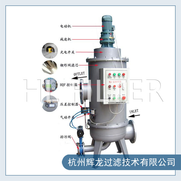 自動(dòng)過(guò)濾器采用由于智能化(PLC、PAC)設(shè)計(jì),系統(tǒng)可自動(dòng)識(shí)別雜質(zhì)沉積程度,給排污閥信號(hào)自動(dòng)排污。水由進(jìn)水口進(jìn)入自清洗過(guò)濾器機(jī)體,利用濾網(wǎng)直接攔截水中的雜質(zhì),去除水體懸浮物、顆粒物,降低濁度,凈化水質(zhì),減少系統(tǒng)污垢、菌藻、銹蝕等產(chǎn)生,以凈化水質(zhì)及保護(hù)系統(tǒng)其他設(shè)備正常工作的精密設(shè)備。